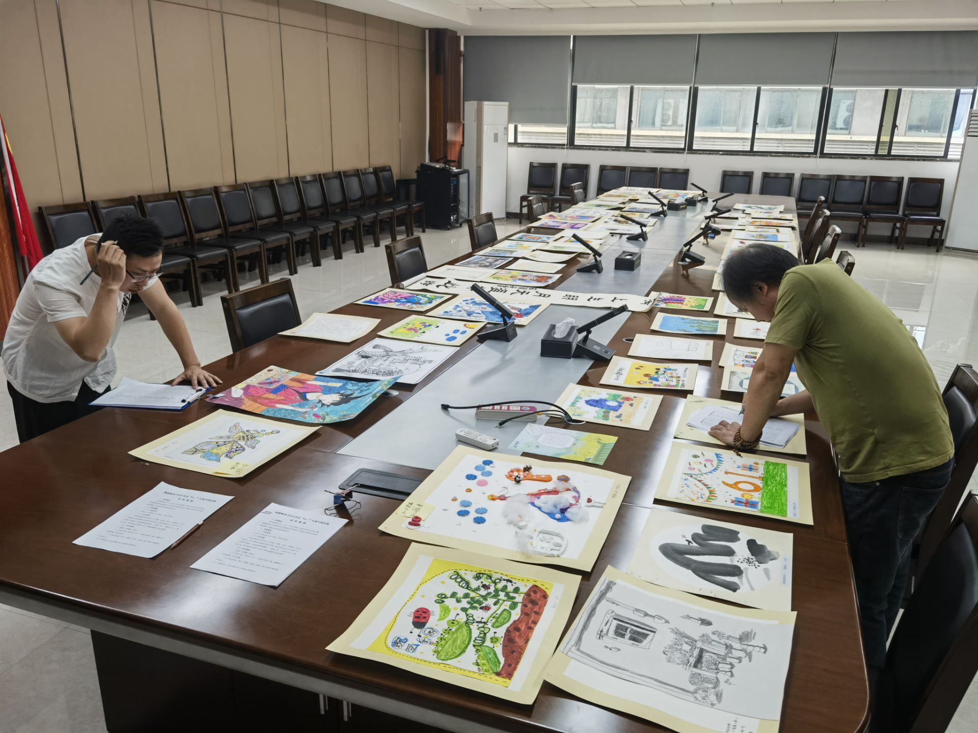 為了確保比賽的公正性和專業(yè)性,綠港集團(tuán)創(chuàng)新性地采用了現(xiàn)場與遠(yuǎn)程相結(jié)合的評(píng)審模式,特邀專業(yè)評(píng)委老師、學(xué)生評(píng)委組成評(píng)審團(tuán)。部分無法親臨現(xiàn)場的評(píng)委遠(yuǎn)程參與了作品評(píng)審過程,與現(xiàn)場評(píng)委一同對參賽的65幅作品從繪畫主題、構(gòu)圖完整、色彩和諧、作品感染力和創(chuàng)作力等方面對作品進(jìn)行細(xì)致地考量打分,確保每一幅作品都能得到公平且專業(yè)的評(píng)價(jià)。經(jīng)過多輪嚴(yán)格篩選,最終從兩個(gè)年齡段組別(3-6歲、7-12歲)中評(píng)選出了共計(jì)14個(gè)獎(jiǎng)項(xiàng)的得主,包括每個(gè)組別的一等獎(jiǎng)1名、二等獎(jiǎng)2名、三等獎(jiǎng)4名。